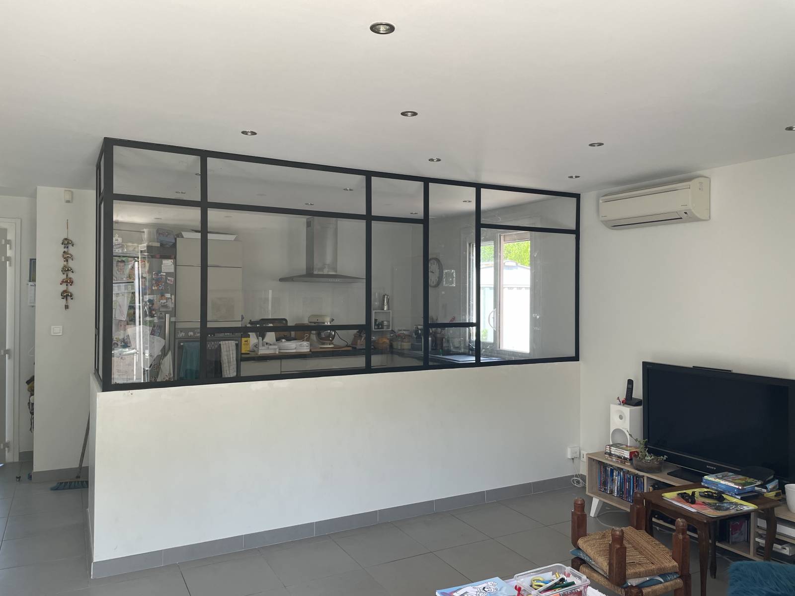 La verrière est assemblée en atelier avec des profilés acier soudés, des vitrages feuilletés et un système de fixation propre à l’aménagement intérieur. Le cadre est thermolaqué dans une teinte RAL mate ou satinée pour un rendu épuré. La pose est assurée avec précision pour garantir étanchéité, stabilité et esthétique parfaite.